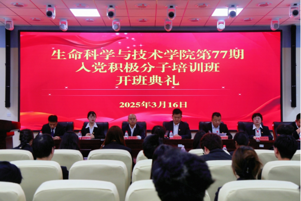 3月16日上午,生命科学与技术学院第77期入党积极分子培训班开班典礼在塔里木盆地生物资源保护利用重点实验室B301会议室举行,学院党委副书记、纪委书记邢金明,党政办公室主任李建伟,生物科学系教师党支部书记韩占江,生物技术系教师党支部书记胡超越,硕士研究生党支部书记许疆维,博士研究生党支部书记曹卓,本科生党支部副书记蒋玉祥参加了此次活动,活动由李建伟主持。