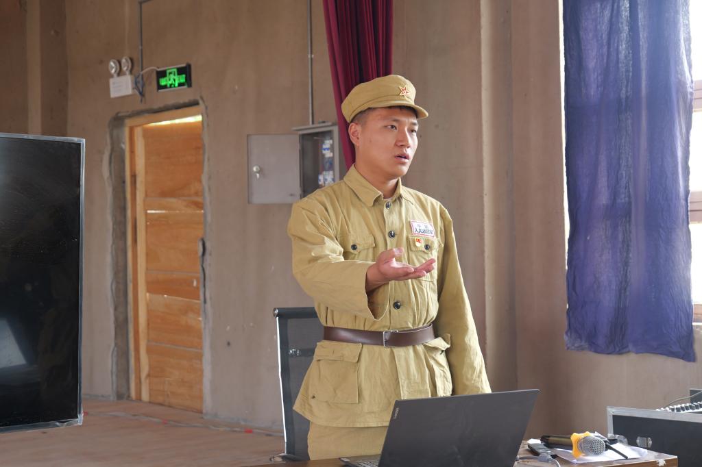 到达教育基地后,进行“扎根促生产”情景剧排演活动,有的人拿镐、有的人拉犁、有的人挑着扁担,再现三五九旅战士们屯垦戍边的光荣岁月,大家切身感受到了老一辈兵团人在自然环境恶劣和物资缺乏的情况下,是如何用青春和热血诠释“热爱祖国、无私奉献、艰苦创业、开拓进取”的兵团精神。