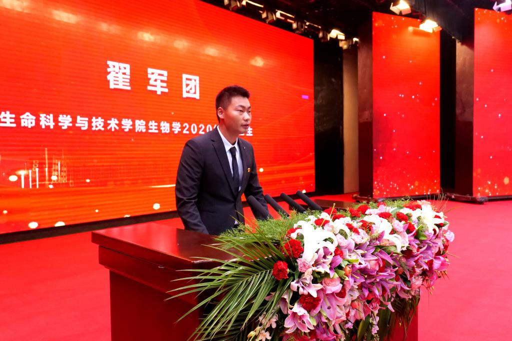 学生代表、生命科学与技术学院生物学2020级博士生翟军团发言时说,今年是我在塔大求学之路的第十年,十年光阴让我见证了母校的巨大变化。拳拳学子情殷殷,报答母校三春晖。学校正以前所未有的速度和动力发展着,今天的我们有了更好的求学条件,作为胡杨学子,我们将牢记嘱托,坚定不移听党话、跟党走,践行“请党放心、强国有我”的铮铮誓言,夯实专业基础,攻克技术难题,在建设兵团特点南疆特色一流大学的新征程中贡献青春智慧和力量。