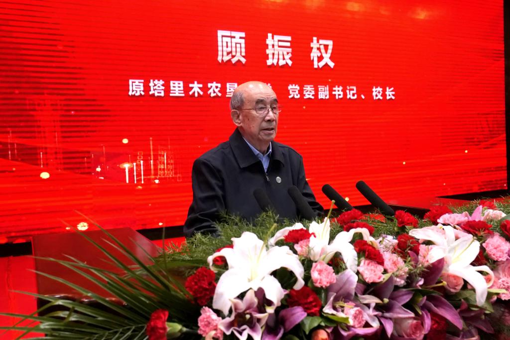 塔里木大学原校长顾振权致辞表示,自己陪伴着学校走过了四十个春秋,在党的培养下、学校的浸润下,逐渐成长发展,度过了人生中最宝贵、最幸福的美好时光。今天,作为一个老校友、老校长能站在这里和大家一起共庆母校六十五岁生日,我感到无比的激动和自豪。这次回到学校,我又一次看到了学校巨大的发展和变化,办学层次实现提升、办学规模快速扩大、办学条件明显改善、社会声誉显著提高,发生了翻天覆地的变化,我从心底里感到高兴、感到骄傲、感到自豪。希望学校把南泥湾传统、抗大作风、胡杨精神不断传承下去,在人才培养、科学研究、社会服务、文化传承创新等方面不断冲向新的高峰,更好地为新疆和兵团特别是南疆的经济发展、社会稳定、民族团结,作出更加卓越的贡献。