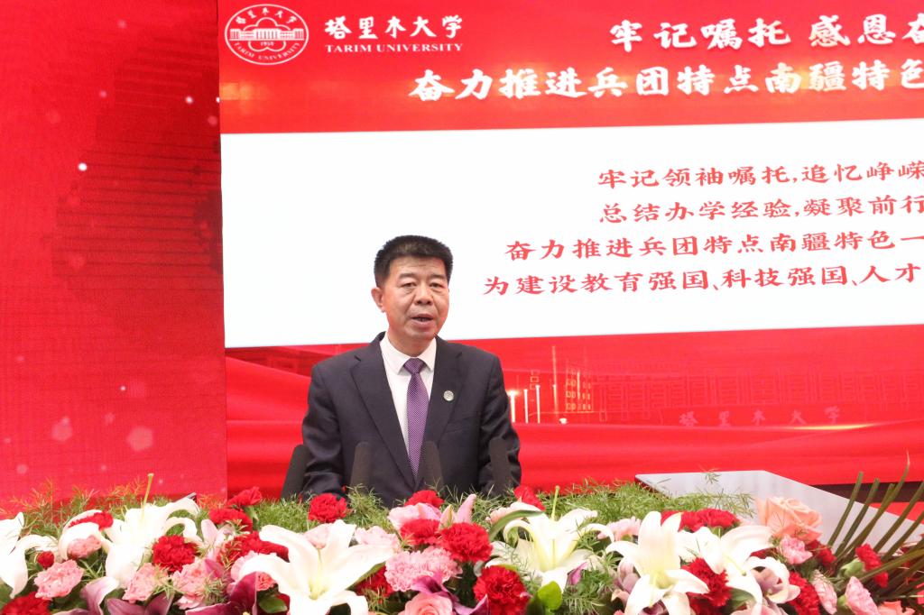 塔里木大学历任校领导、离退休干部和教师、校友、家属、台州市援疆指挥部等代表,同全校处级干部、师生代表共同参加。