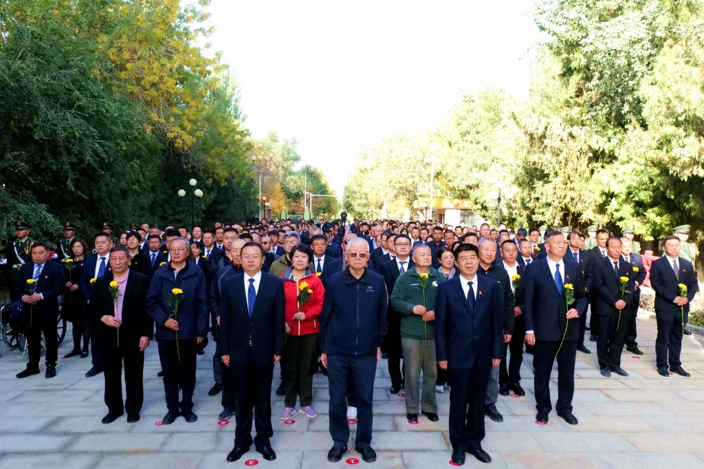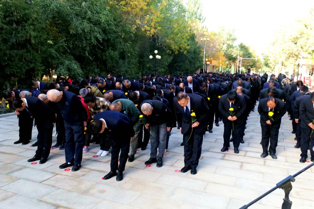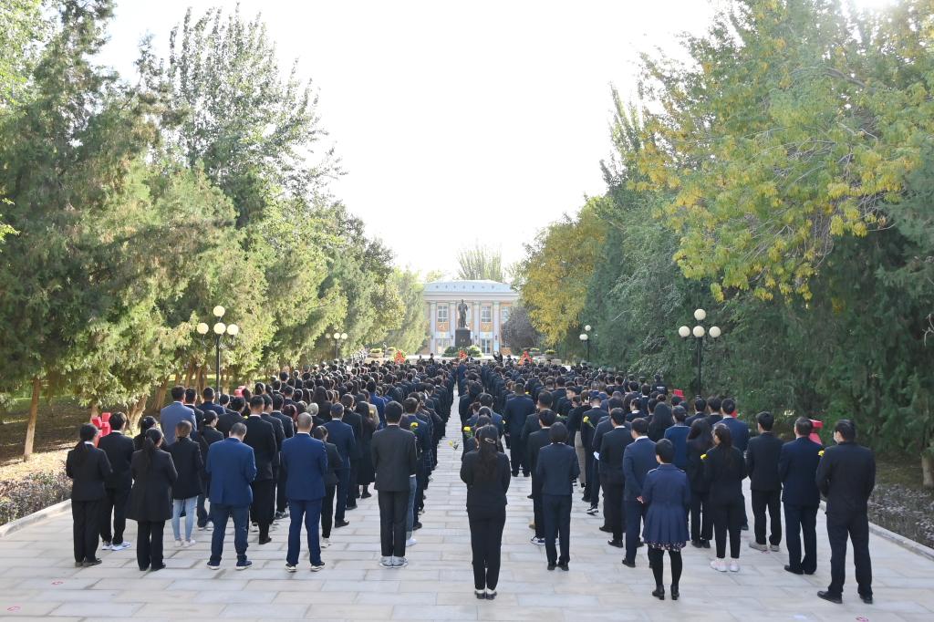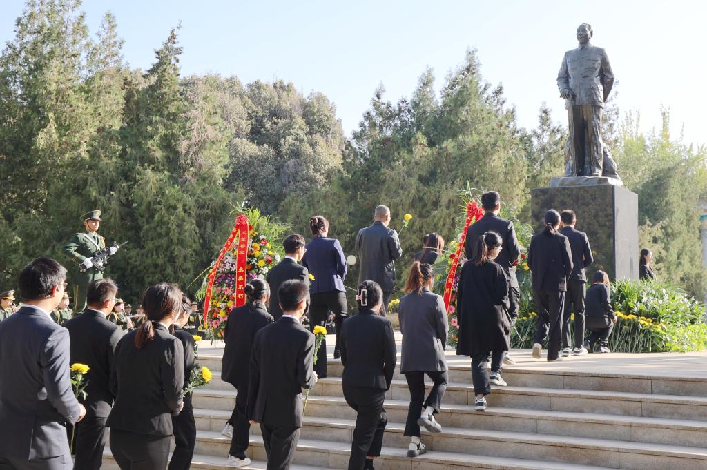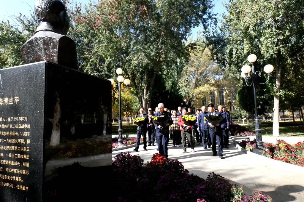 干部、师生依次走向铜像基座献花,深情缅怀革命先烈的丰功伟绩,表达对王震将军等老一辈革命烈士的无限追思。